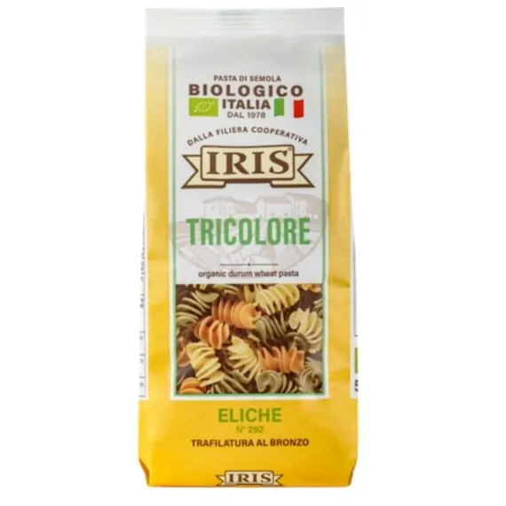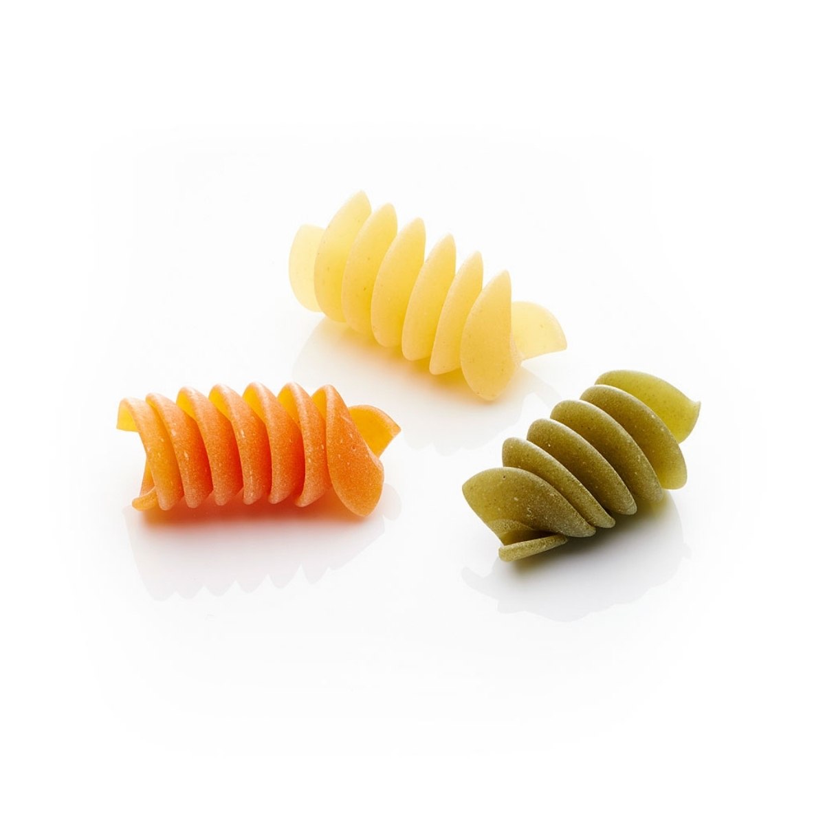 Sémola de trigo duro, 4% tomate en polvo, 1,8% espinacas en polvo, agua.