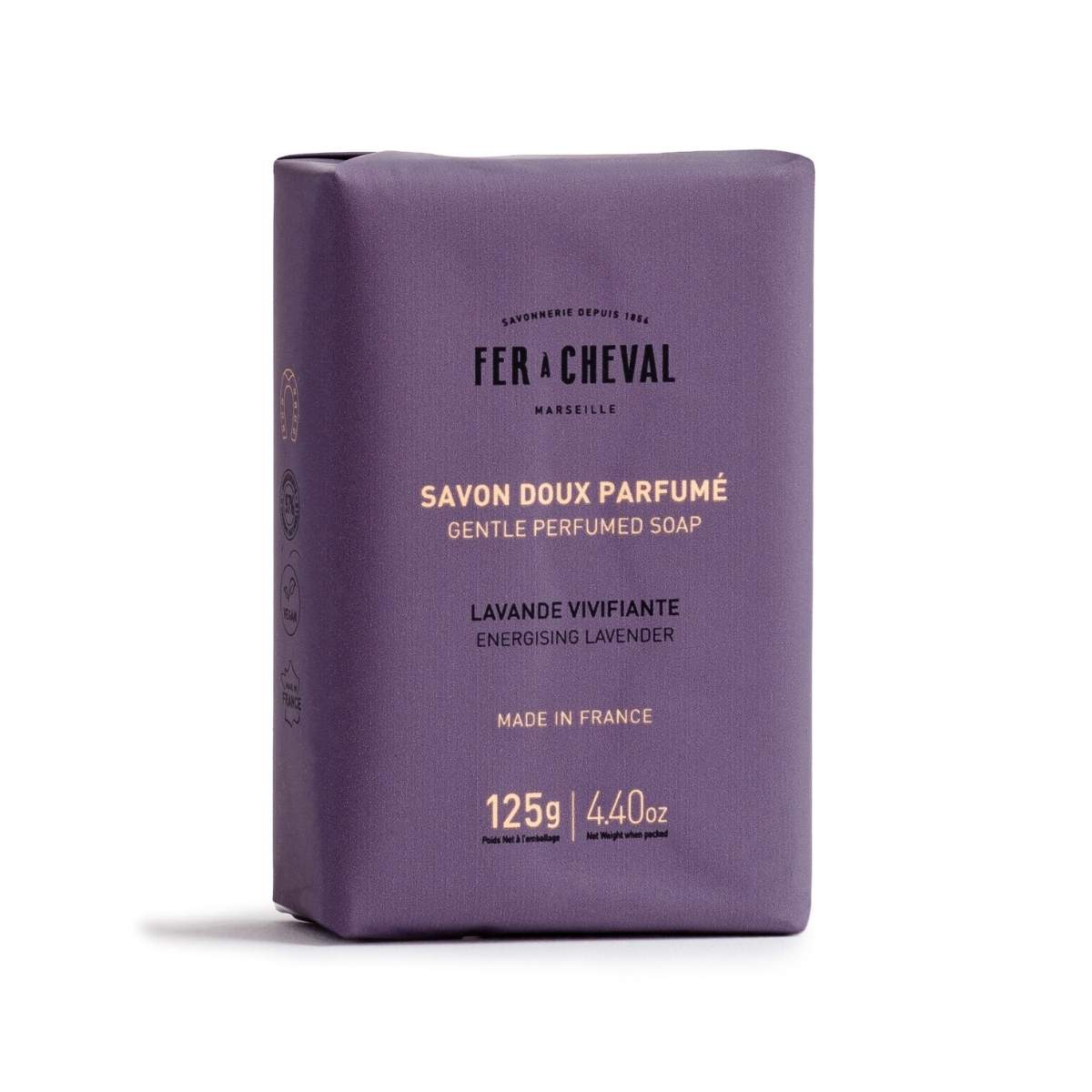Fer à Cheval es una empresa experta jabonera que se fundó en 1856 en Marsella, Francia, y desde entonces elabora su propio jabón de Marsella de forma artesanal, siguiendo la receta y el método tradicional. En esta nueva gama de jabones sólidos perfumados, Fer à Cheval ha querido unir su know-how y métodos ancestrales para crear una colección de pastillas de jabones únicas.