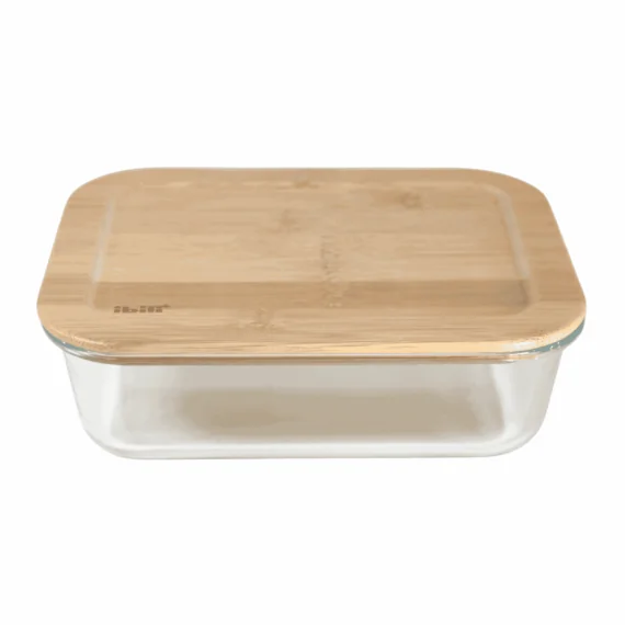 Descripción del tupper de vidrio borosilicato y bambú